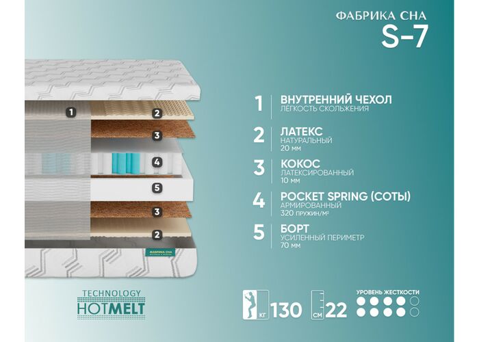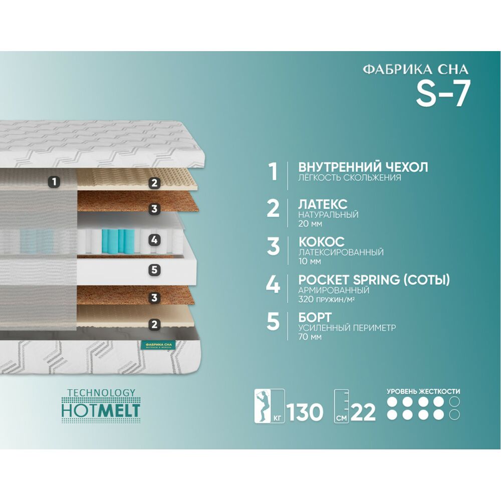Для расчёта рейтинга используются общие оценки товара и оценки по характеристикам за всё время. Поделитесь своим мнением о товаре: Матрас Фабрика сна S-7