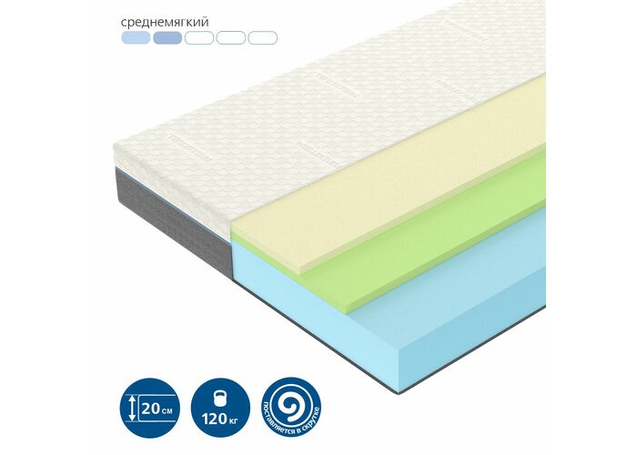 Инновационный материал с памятью формы, разработанный для нужд аэрокосмической отрасли. Обладает одновременно вязкостью и эластичностью, что дарит спящему ощущение невесомости.