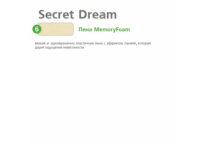 Инновационный материал с памятью формы, разработанный для нужд аэрокосмической отрасли. Обладает одновременно вязкостью и эластичностью, что дарит спящему ощущение невесомости.