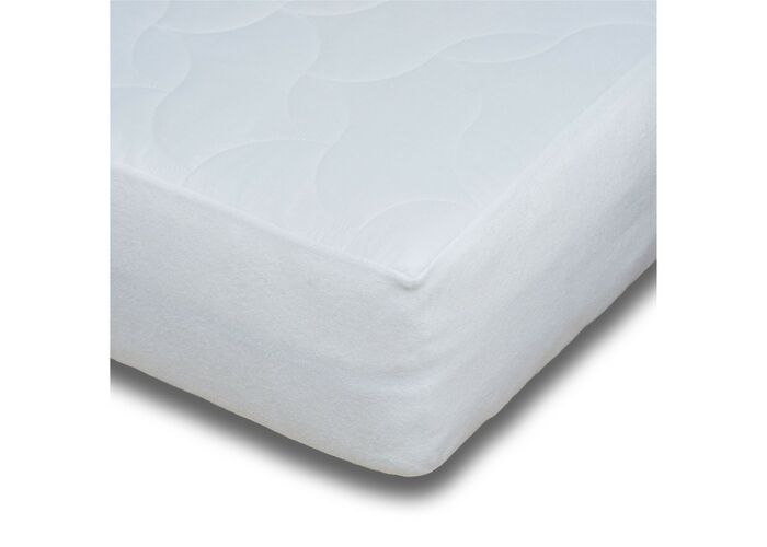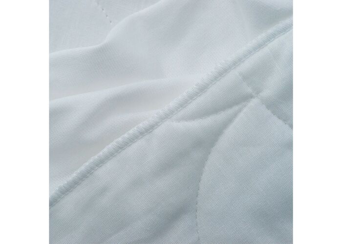 Наматрасник закрывает как верхнюю часть матраса так и бока, надежно фиксируясь на цельной резинке.
